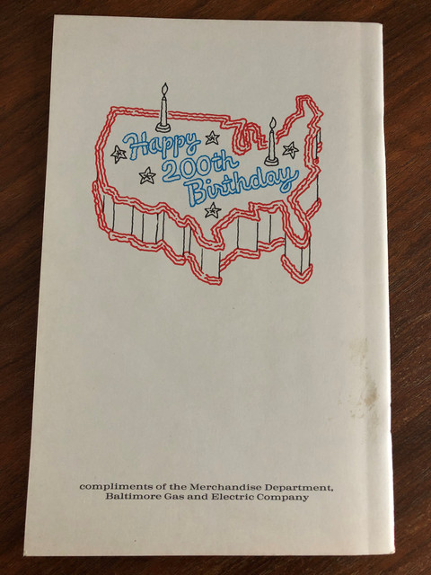 Held within Historic Annapolis’s collection is a booklet, Maryland Recipes: in honor of the Bicentennial, printed by BGE (yes, the electrical company) in 1976. This booklet was among countless items and mementos published that year, celebrating America’s 200th birthday. The William Paca House opened its doors to the public that year and also contributed to this specific booklet, providing recipes from Miss Ann Chase’s book (1811) and from a descendent of William Paca.